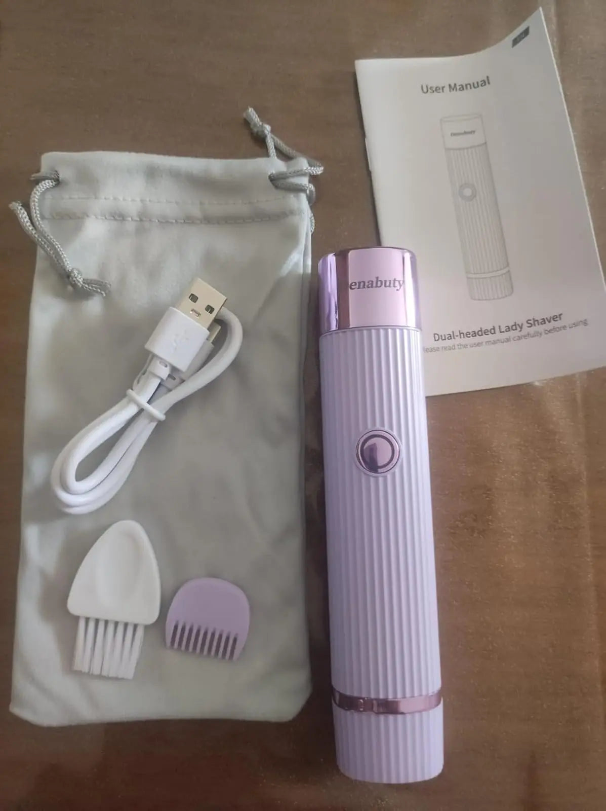 Rasuradora, cabezal de repuesto, cepillo de limpieza, cable USB y manual.