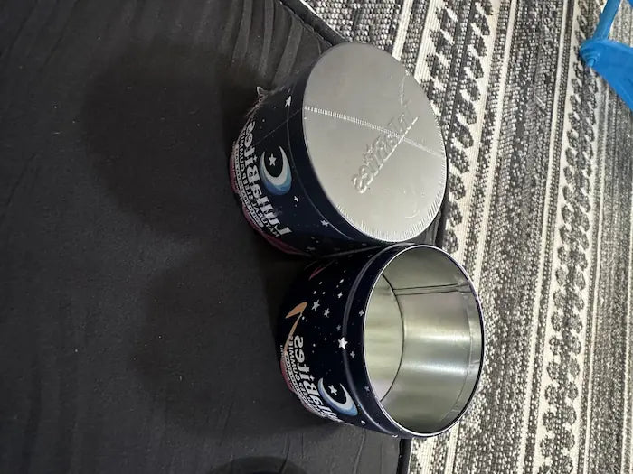 Peso o tamaño: Tamaño estándar de gomitas, lata compacta apta para mochila o mesita de noche (aprox. 100 g).