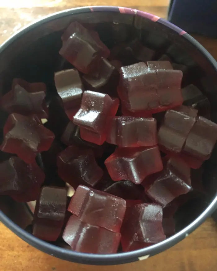 - Mastica bien las gomitas hasta que se disuelvan completamente.